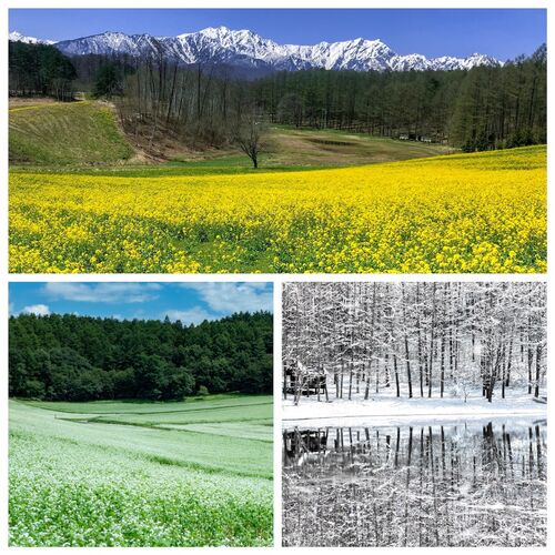 長野県大町市にある、中山高原。農家の方々が育てている畑が広がっているんだけど、春は菜の花、夏は蕎麦の花が満開になって、とても綺麗なんです。中山高原の四季を写真で紹介するよ!